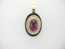 | 42601 14k yg 3/8tw onyx/pktourm enhancer pend |