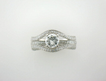 Item: 39173 Description Platinum and diamond ring set with one .92ct. round brilliant cut diamond H in color and I1 in clarity (GIA cert). There are also ninety two round brilliant cut diamonds with a total diamond weight of .75cts. Larger diamond in center in four prongs and smaller diamonds micro pave set. Your Price : $5,950.00